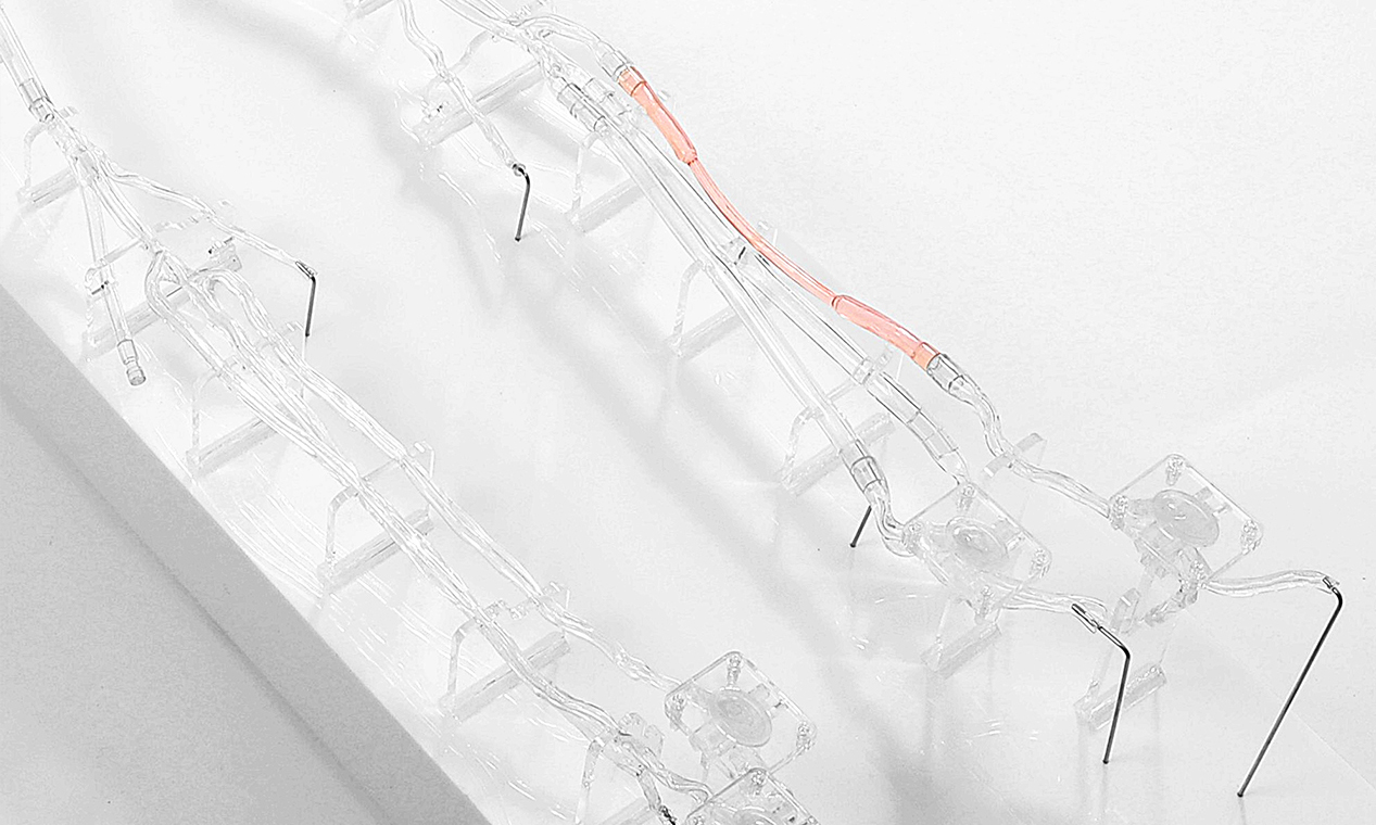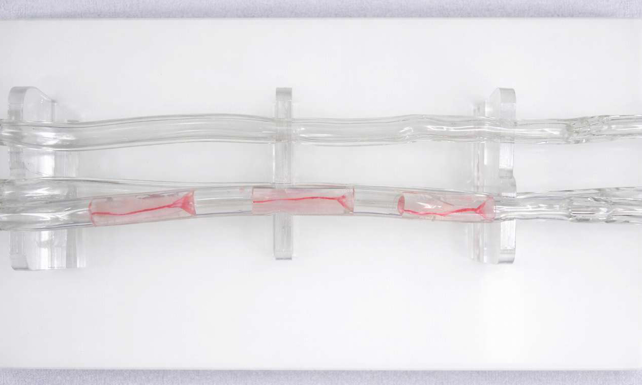 光造形や最新の3Dプリント技術による型を用い、血管形状を忠実に再現しています。 さらに、製造工程の多くをハンドメイドで仕上げることで、精密さと再現性を調整しています。