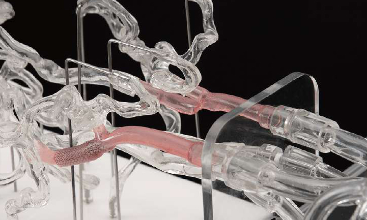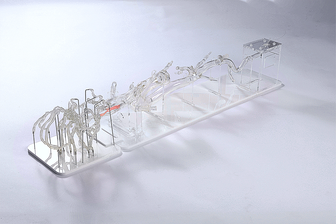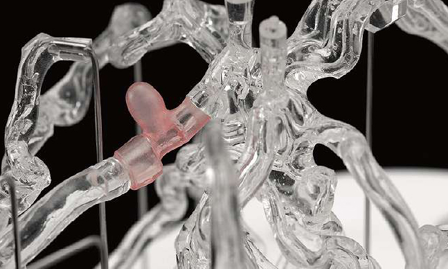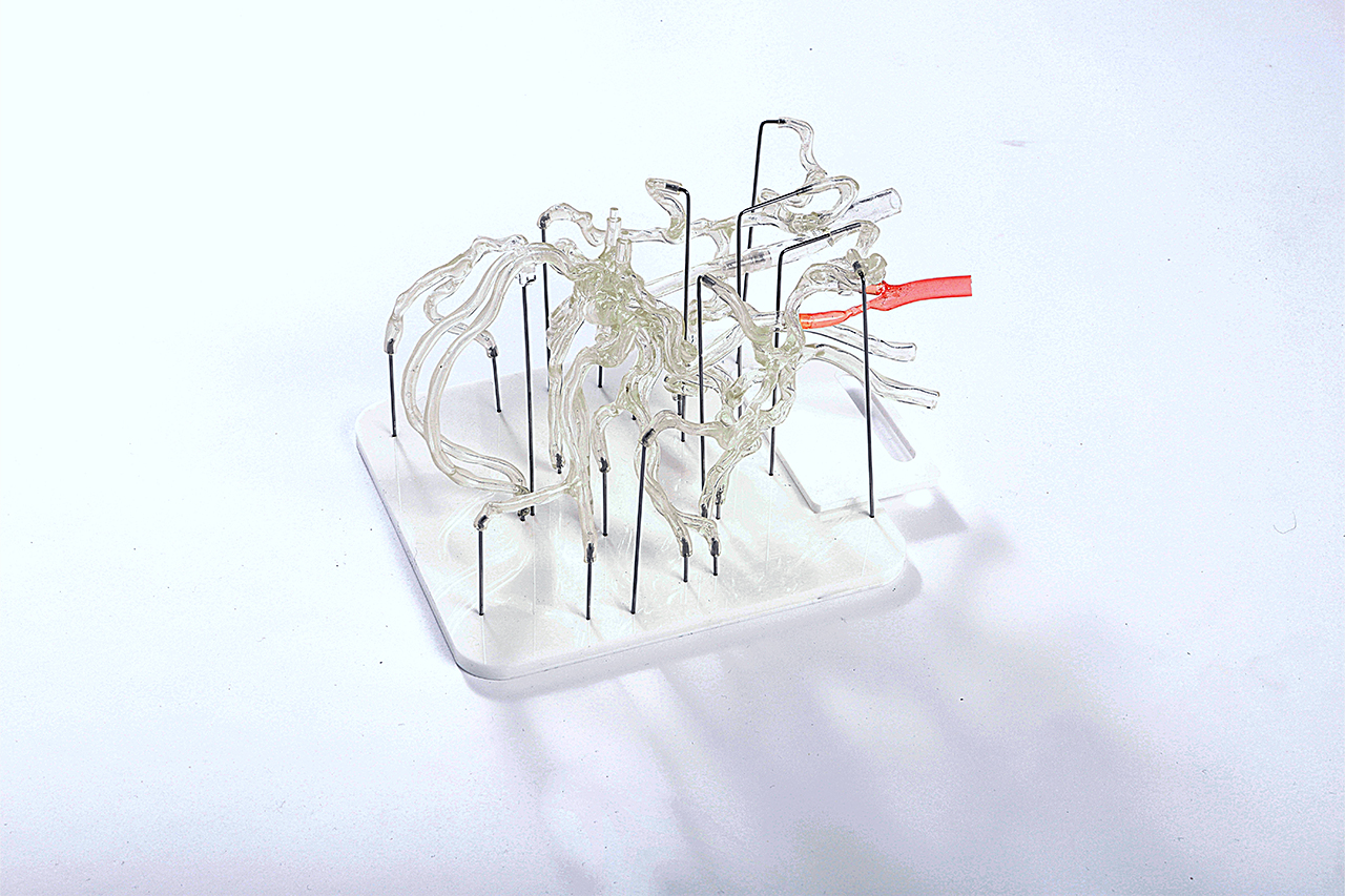 光造形や最新の3Dプリント技術による型を用い、血管形状を忠実に再現しています。