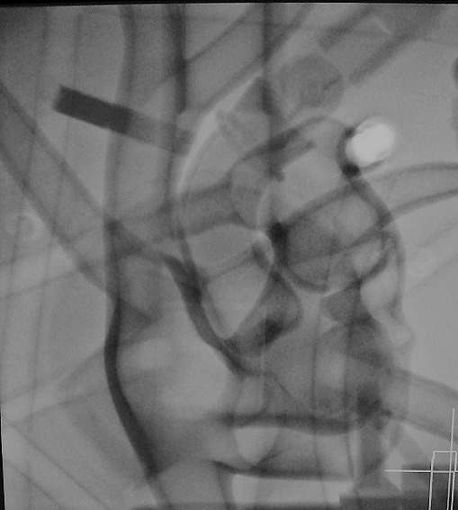 透視でシリコン樹脂の辺縁を見ることができますので、透視下でのトレーニングにも対応できます。